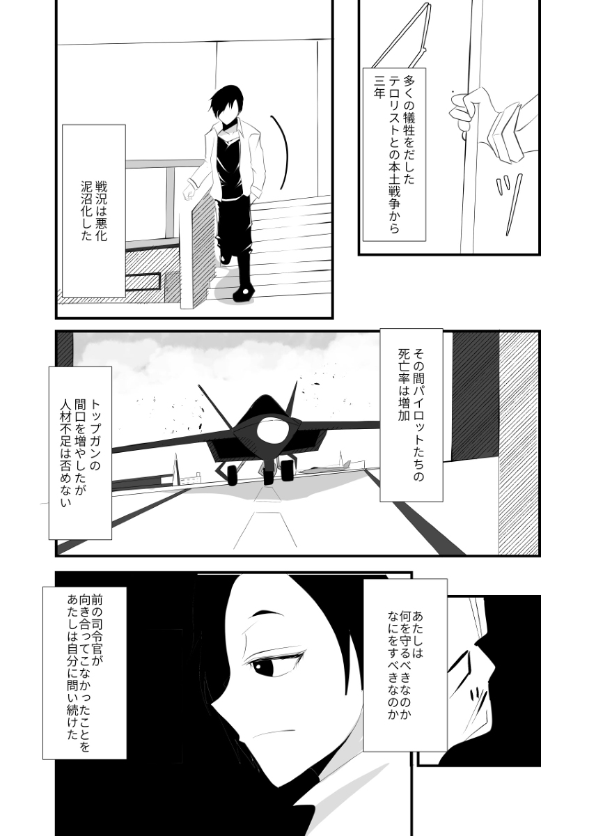 荒廃した国のパイロットたちの群像劇。 今回は半引退気味のテロリストの皆様の話です。 この人たちがやっていたことは三年前の戦争編で書く予定。 #創作漫画 #漫画が読めるハッシュタグ #スカイストライカーズ (1/4)