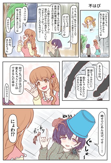 『不はぴ』 デレぽ[10-05_12:08]の。 はぴる隙なし。 pixiv.net/artworks/10200… #アイドルマスターシンデレラガールズ #桐生つかさ #白菊ほたる #諸星きらり #スカイズ・ザ・リミット