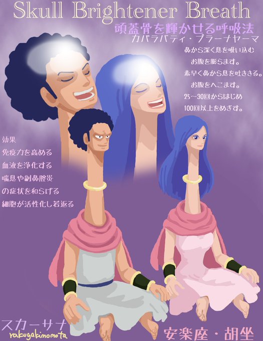 #シャーロット・マスカルポーネ #シャーロット・ジョスカルポーネ お誕生日おめでとうございます🎉 二人共名前にスカルがありますね~~ という事で 本日のおうちヨガしませんか? #スカーサナ (胡坐)で #スカルブライトナーブレス #onepiece #ヨガ #イラスト