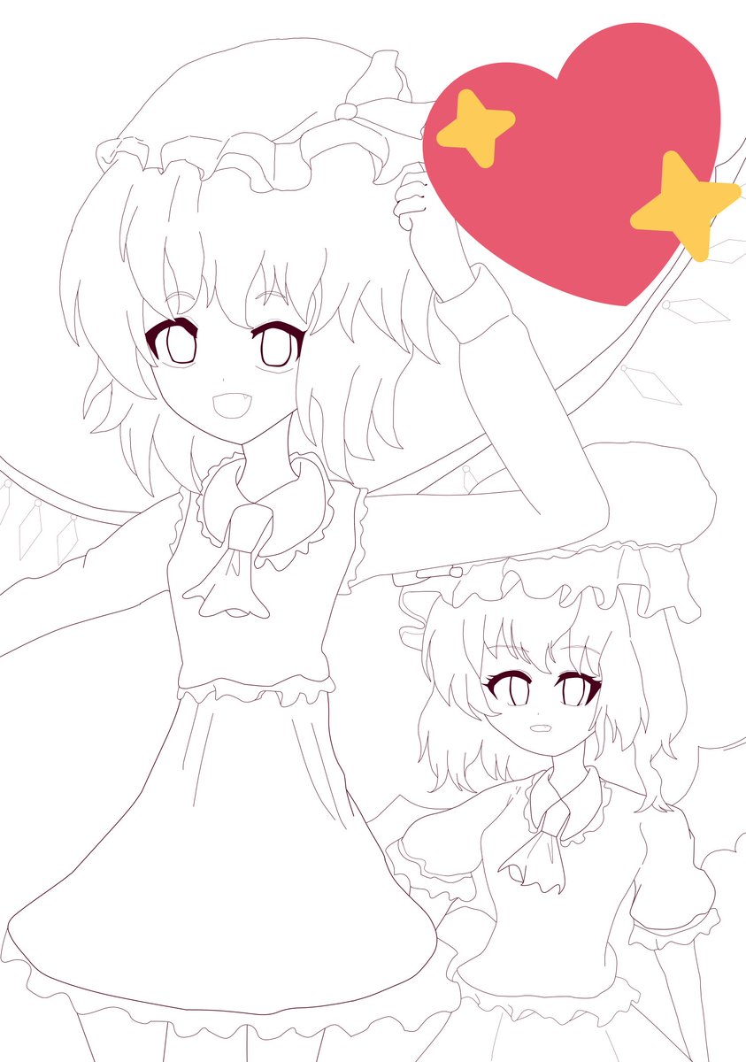 スカーレット姉妹の線画完成!! 線画修正済みだよ(*^^*) ⚠️※線画使わないでね🈲❌⚠️ #絵描きさんと繫がりたい #イラスト好きと繋がりたい #ファンアート #東方Project #スカーレット姉妹 #可愛いと思ったらRT #女の子イラスト