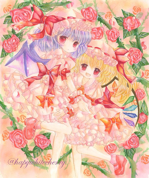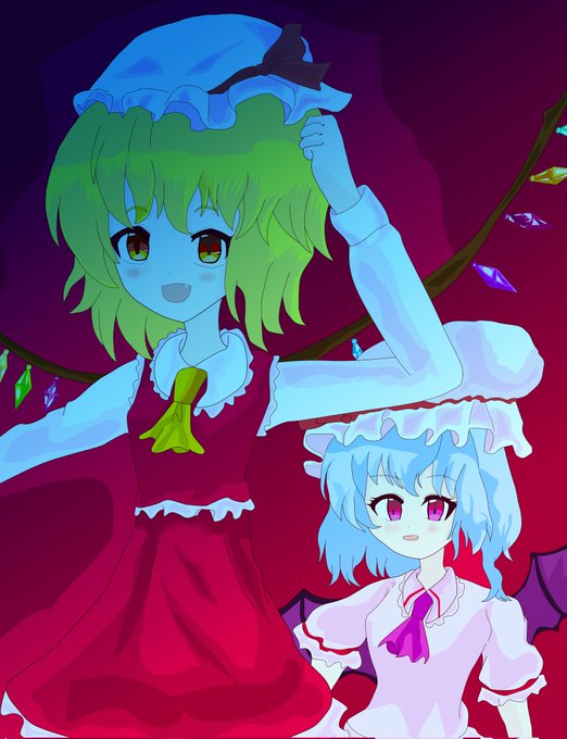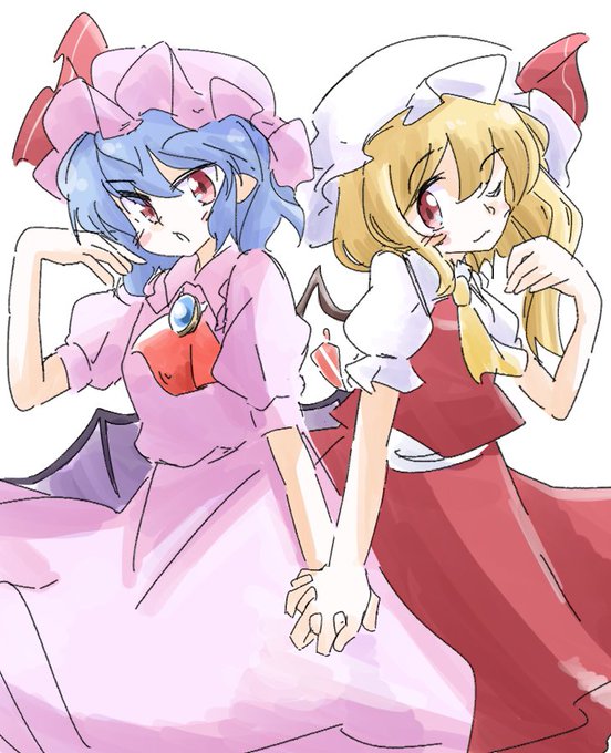 続いて紅魔館の御二方、スカーレット姉妹様でございます♪ まだ羽がw(^_^;) #東方Project #レミリア・スカーレット #フランドール・スカーレット #スカーレット姉妹 #イラスト #東方絵 #描いてみた