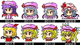 パワポケ風スカーレット姉妹(10年間の変遷比較) #ドット絵 #東方 #パワポケ #パワ体 #ビフォーアフター #レミリア・スカーレット #フランドール・スカーレット #スカーレット姉妹 pixiv.net/artworks/10115…