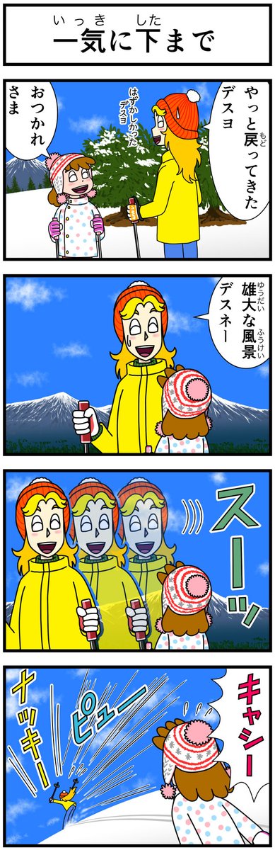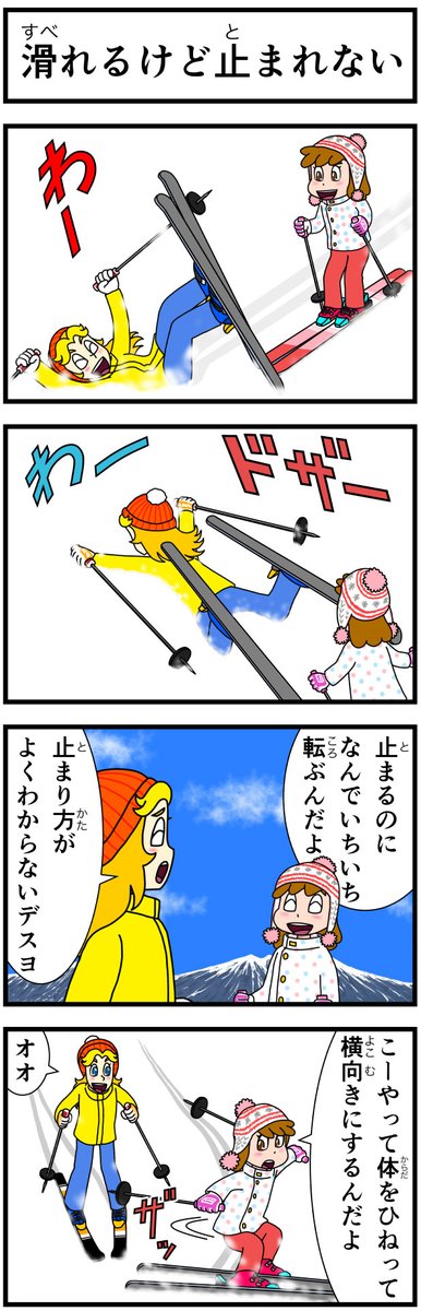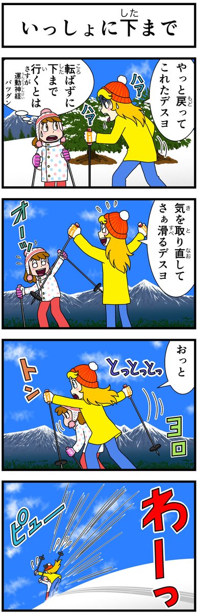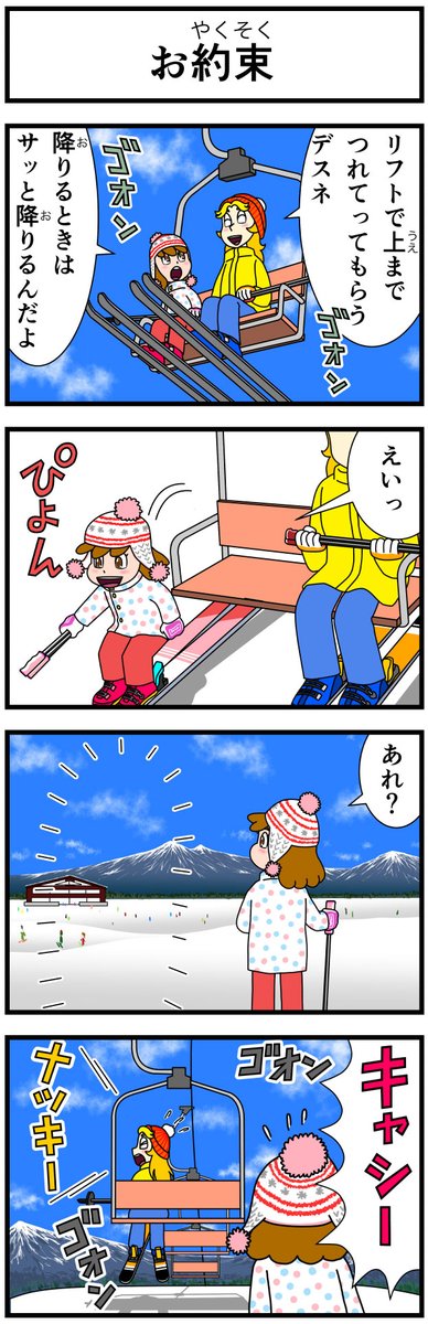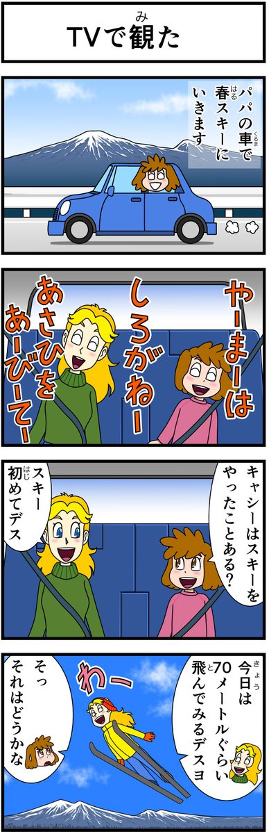 #キャシーとわたし 去年の3月のふたりを4日間だけ、ちょこっとリバイバル ドゾー #漫画 #漫画が読めるハッシュタグ #漫画がよめるハッシュタグ #創作漫画 #4コマ #4コマ漫画 #4コママンガ #過去絵を投げて絵を描いた気になろうキャンペーン #スキー #ほのぼの #ほっこり