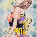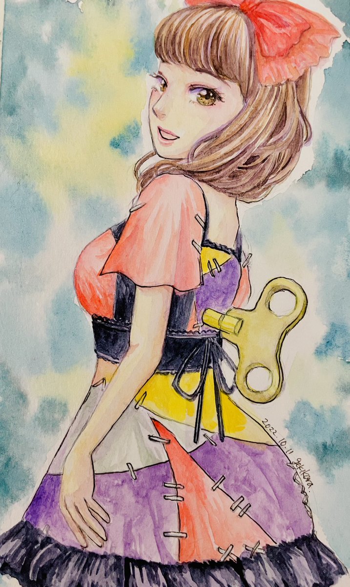 本日の昼休みドローイング((^ω^≡^ω^)) 画材持って来れなかったのでシャーペンで✨また塗るかも🕸 天音ちゃんハロウィンドレスです🎃 #スクストアナログイラスト部 #スクストハロウィン2022