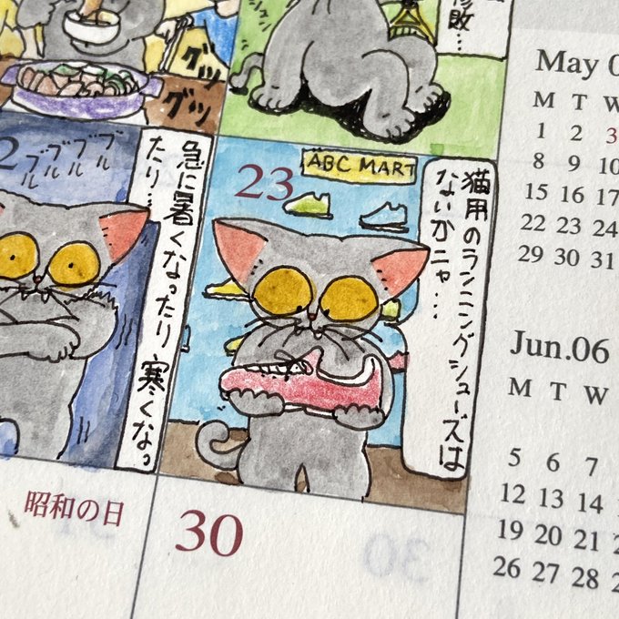 ランニングシューズを見てきた。 #水彩画 #手帳 #トラベラーズノート #猫 #スケッチジャーナル #マンスリージャーナル #絵 #イラスト #イラスト好きな人と繋がりたい #絵描きさんと繋がりたい