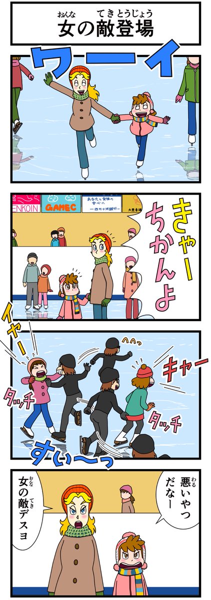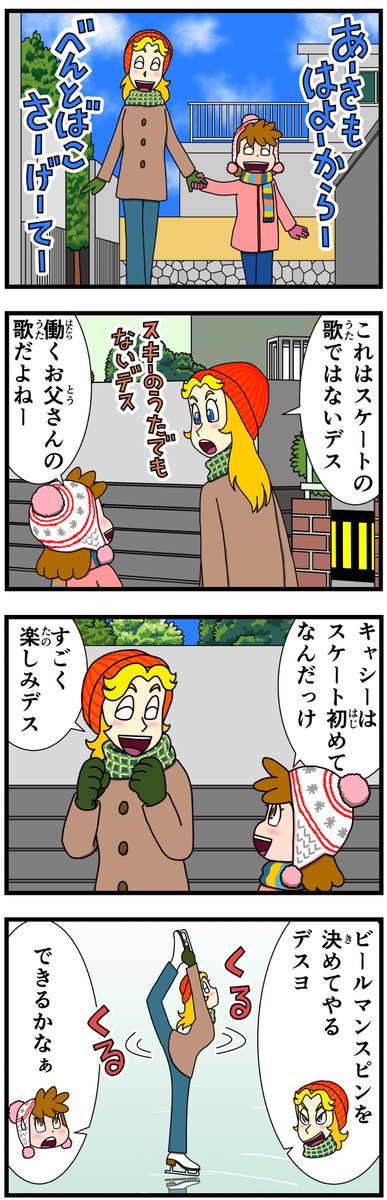 #キャシーとわたし 去年の2月のふたりをちょこっとリバイバル 第36話 キャシーとスケート 4日目〜 #漫画 #漫画が読めるハッシュタグ #漫画がよめるハッシュタグ #4コマ漫画 #4コママンガ #過去絵を投げて絵を描いた気になろうキャンペーン #manga #スケート #skate #skating