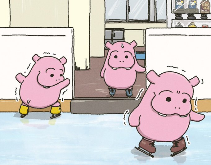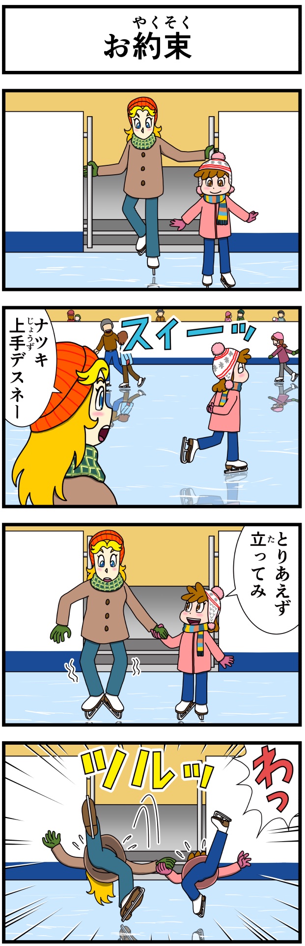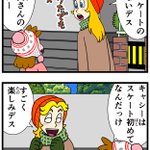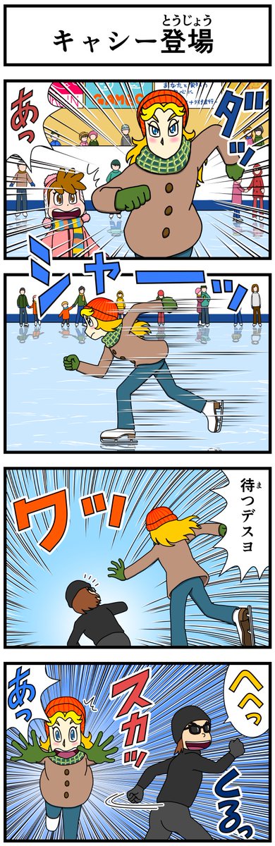 #キャシーとわたし 去年の2月のふたりをちょこっとリバイバル 第36話 キャシーとスケート ドゾー #漫画 #漫画が読めるハッシュタグ #漫画がよめるハッシュタグ #4コマ漫画 #4コママンガ #過去絵を投げて絵を描いた気になろうキャンペーン #manga #スケート #skate #skating