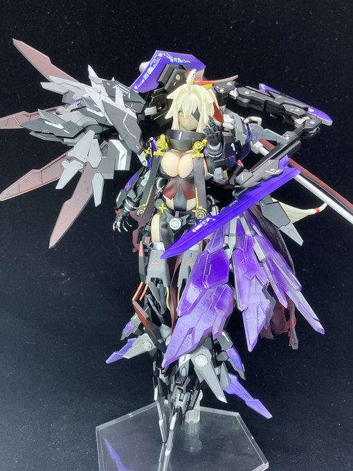 スサノヲ 完成! 武装が変形して武器になるのいいですね!武器腕っぽいツメが最高にすこでした!本体が重いからフライングベースはくにゃくにゃなのが少し残念だったけど、すごく好みなキットでした。 #メガミデバイス #スサノヲ #スサノヲ再販したからスサノヲを貼ろう
