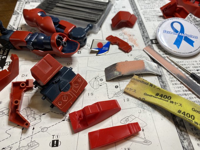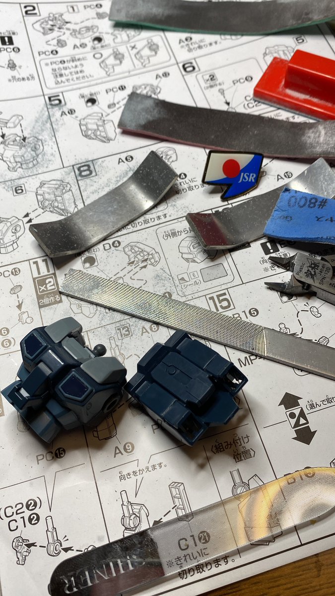 いつの間にか落ちて目が覚めてはヤスってる😅全然前に進まん… もはやヤスリマニア…😓 組んでから気になったらヤスる🙋♂️ #ガンプラ #ゴッドハンド #シモムラアレック #スジボリ堂 #ブルーリボンバッジをつけよう #ガンプラの画像を貼るとRTされると聞いて #ガンプラ好きな人と繋がりたい