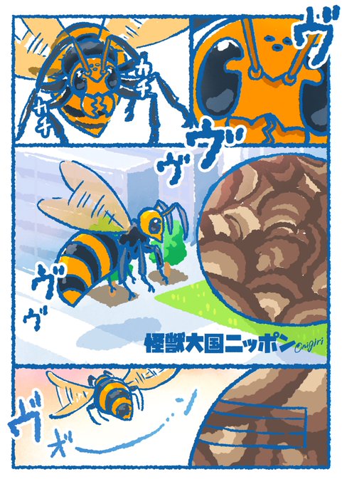 おはばコ~☀️ あまりにも巣が大きくて、駆除が難しいとおもったから、女王蜂さまに直接交渉することにしたんだ! 和菓子気に入ってくれるかな? #うまくいきますように #あおばコならやれる #三部作の三部目 #あおばコ #一日一絵 #スズメバチ #女王 #イラスト #OCイラS #みんなで楽しむTwitter展覧会