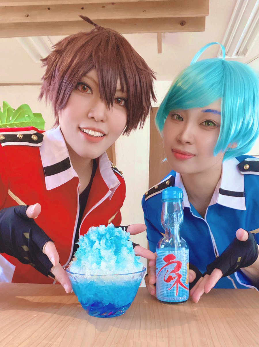 ⚠️cosplay ★━━━━-------- 流星レッドのオススメと!! りゅうせいぶるぅのおすすめです☆ ラムネ、かき氷、ドリンク! さあどれがいいですか〜? --------━━━━★ ❤️@rimicola_cos 💙@iYouri0130 #スタジオシーグラス