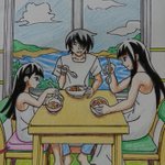 久米田作品パロ。『平凡な未来予想図(仮)』で高橋家、後藤可久士先生、蘭堂月斗パイセン、藤吉晴美さん×屋良かすみさん×山田さん×役者丸ひろ子さん×後藤姫ちゃんっぽい仏像。#かくしごと #スタジオパルプ #さよなら絶望先生 #南国アイスホッケー部 #せかどろ #かってに改蔵 #久米田康治ファンアート