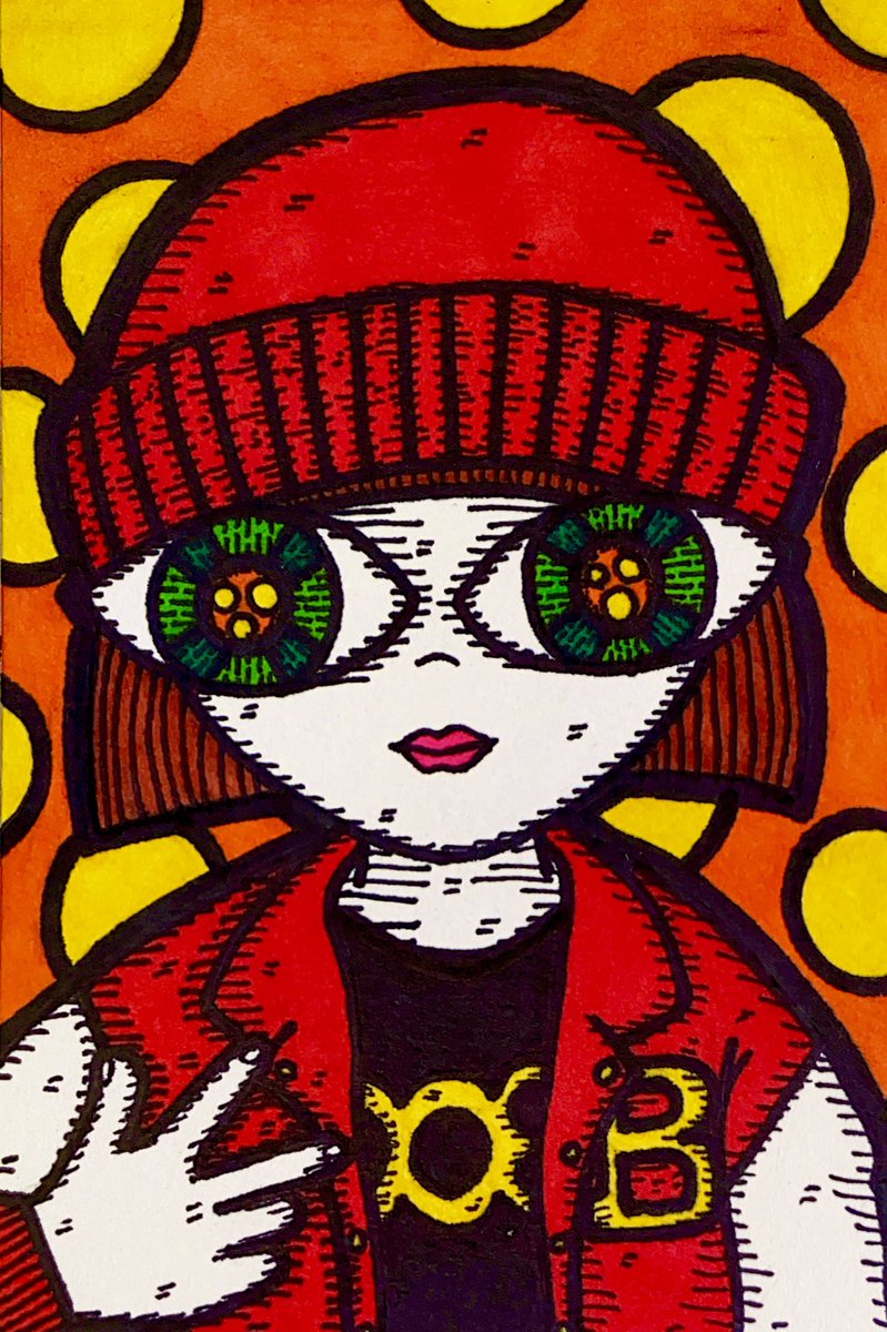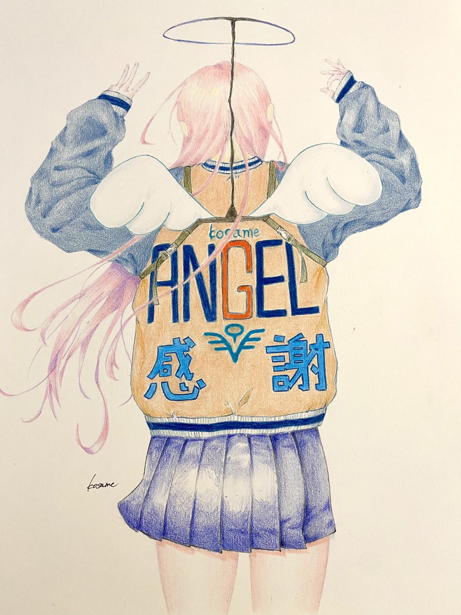 桃から生まれた桃子です🍑 いつもは使わない色で☺︎ #桃太郎 #イラスト #デジタルイラスト #ファッションイラスト #ストリートファッション #レトロ #スタジャン #スカジャン #illustration #art
