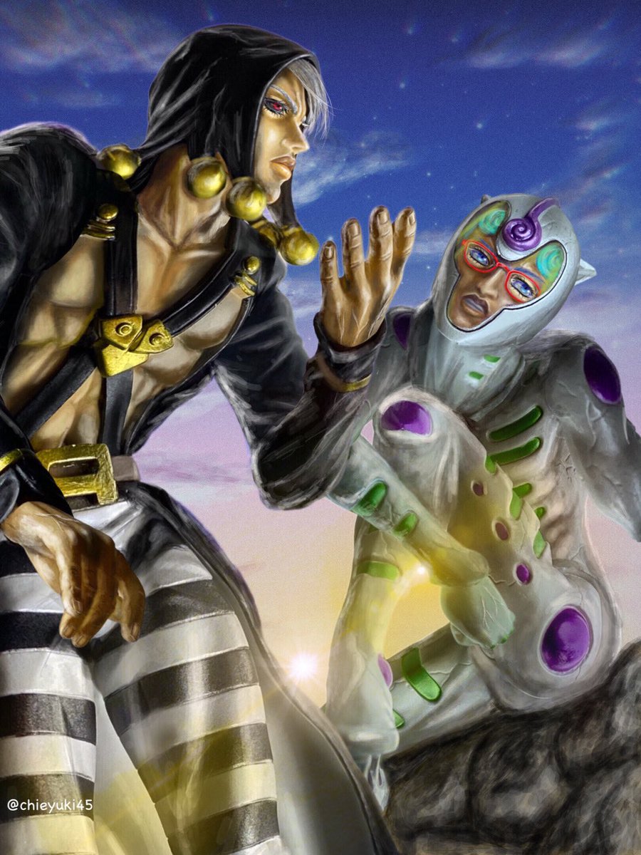 ギアッチョ(W・A) #スタチューレジェンド #jjba フィギュアを部分ごとに撮影後、画面上で合成し、背景、瞳、陰影などを加筆致しました😌 twitter.com/chieyuki45/sta…