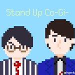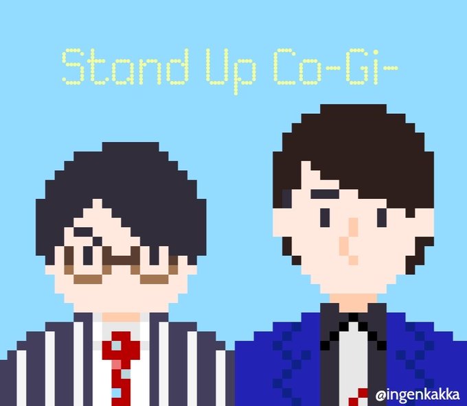 【dotpict】キャンバス64×64で作成。 ぽちぽち描きました☺ コンビ名ロゴは後から加工。 本当は96×96で頑張ろうと思ったけど細すぎて断念…。初期のたまごっちみたい☺ #スタンダップコーギー #ドット絵