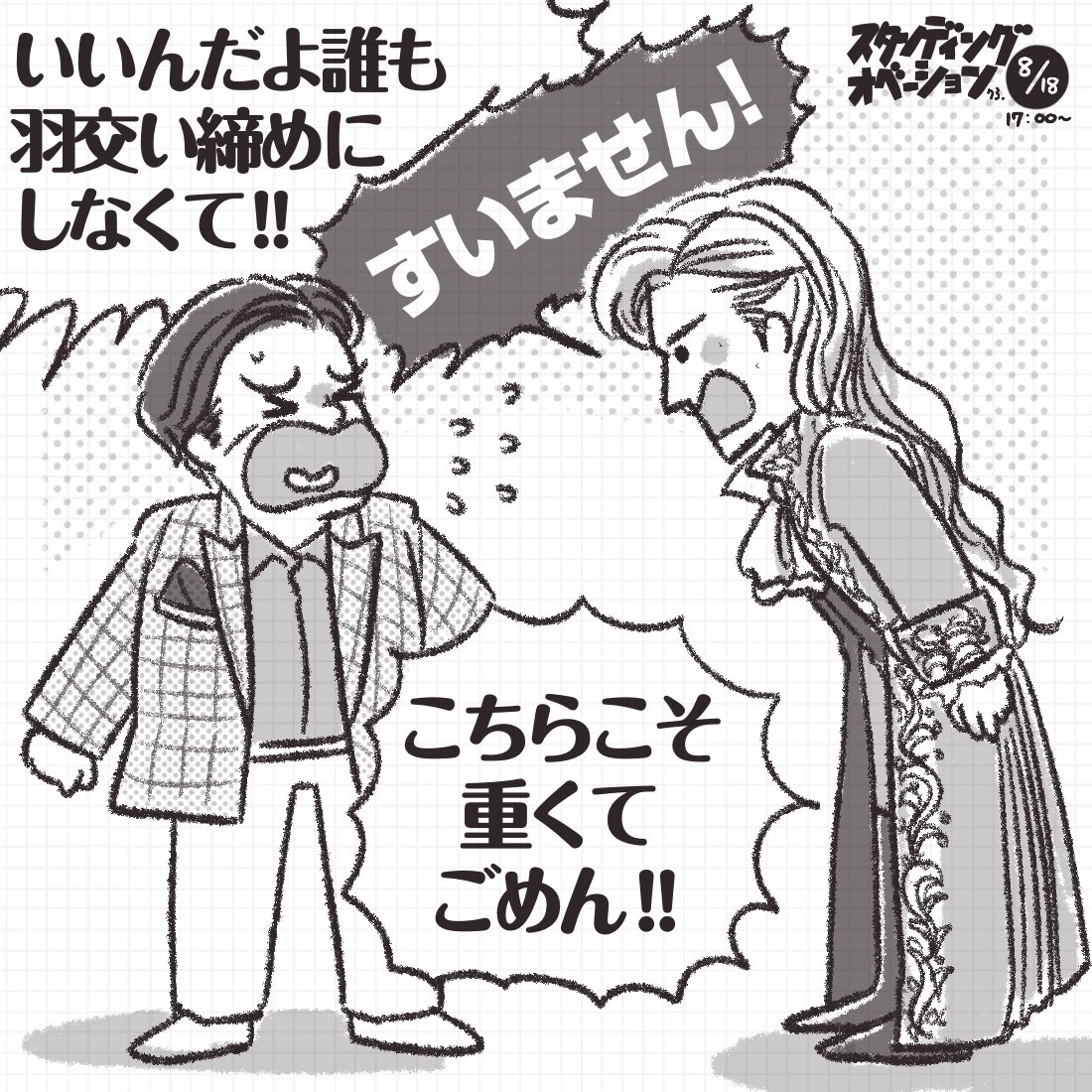【スタオベ 8/29 東京楽】 メサイアのシーンの前、ハケながら変なおじさんの振りをやってたジェシー 麗華(水夏希さん)との真面目なシーンも「あんだって?」で答えるww 今日は志村けんさんの月命日… #スタンディングオベーション