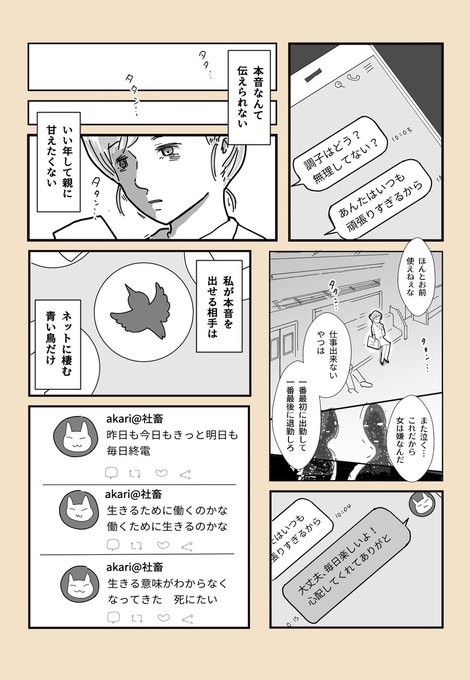【ネットに棲む青い鳥が本音を届けてくれた話】 #コルクラボマンガ専科 #スタンバイで仕事が見つかった 自分が過去救われた時の経験と、ひとつの事件を思い出しながら描きました。 あの日から社会は少しでも変わっただろうか。