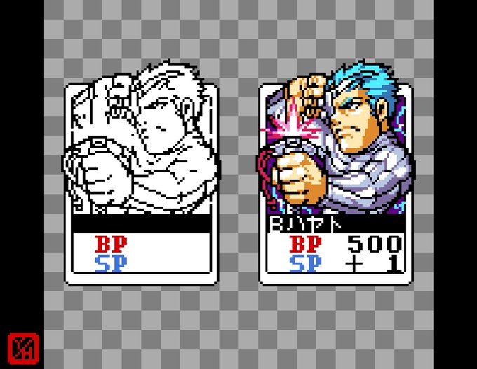NPC『激突カードファイターズ』より、ブラック•ハヤトのカードを模写してみたゾ。 #カードファイターズ #スターグラディエイター #カプコン #ネオジオポケットカラー #ドットアーティスト #ドット絵 #レトロゲーム