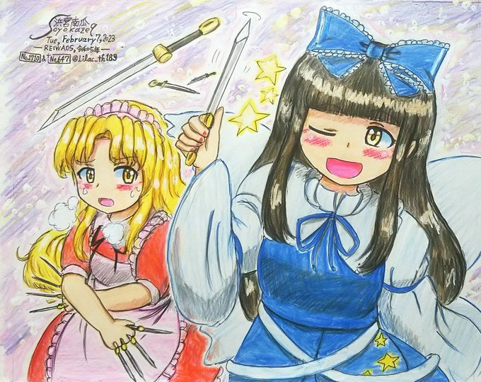 "動く物の気配を探る程度の能力" 調子が良い日は極限まで精度が冴えて、メイドさんのナイフ避けも御手の物?🗡️ #スターサファイア #深夜の真剣お絵描き60分一本勝負 (東方版・1710回目参加) #夢子 #東方版もうひとつの深夜の真剣お絵描き60分一本勝負 (もうひとつ版・647回目参加) (※3月20日お題)