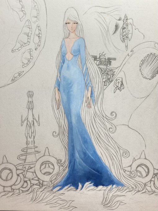 大地・墓標・マザーダウン等々ヤマトBGM聴きながら修正中。川島かず子氏のスキャット、特にopのささき氏のバックコーラスは もうロック!だなぁと。 #spacebattleshipyamato #yamato #watercolor #watercolorpainting #宇宙戦艦ヤマト #ヤマト #松本零士 #スターシャ #水彩画 #水彩画イラスト