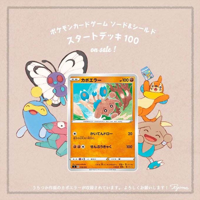 12/17発売の『#ポケモンカードゲーム ソード&シールド #スタートデッキ100』に、以前イラストを担当した「ワシボン」「イーブイ」「ガラルニャース」「ゴビット」「キルリア」「シードラ」のカードを再録いただいてます!わーい!どうぞよろしくお願いします pokemon-card.com/ex/si/index.ht…