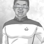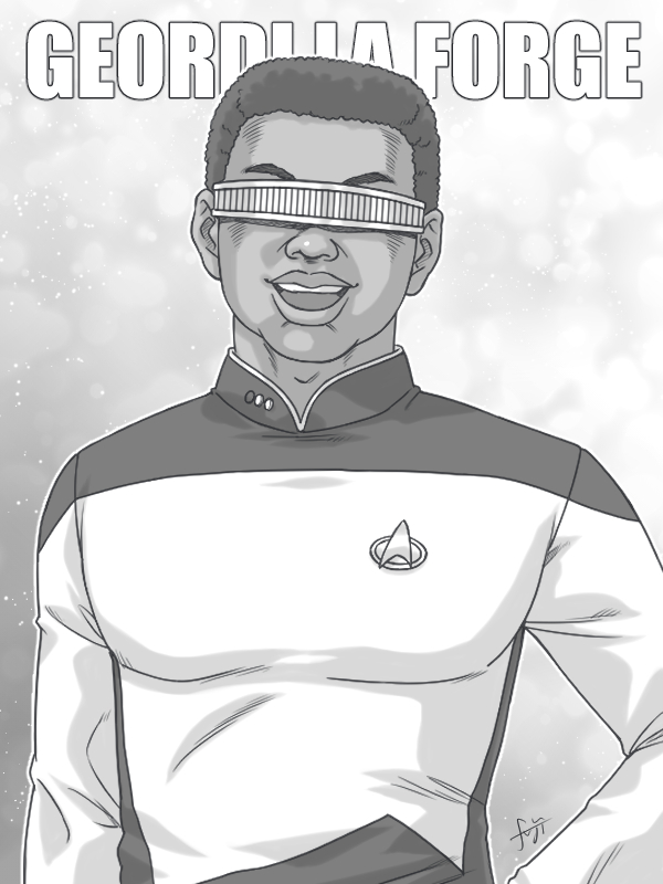 週イチTNG 今回はラ=フォージくん! 老後に趣味でギャラクシー級戦艦のレストアをする男である🙃 この人がヴォイジャーに乗っていたらたぶんシーズン2で地球に帰還しちゃう #イラスト #スタートレック #StarTrekTNG
