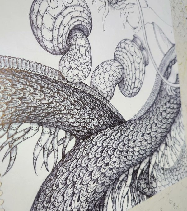 外で絵を描いてるとご近所さんが集まってLIVEペイント状態😅 NEW看板完成です😊 #スチパン🍄 #スチパン #絵 #絵描き #絵描きさんと繫がりたい #ボールペンアーティスト #moritaka