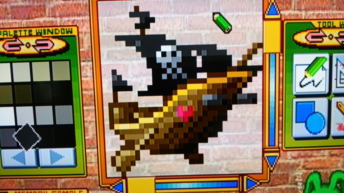 PSの #デザエモンKids! で作成したオリジナルシューティングゲーム 「#スチームパイレーツ」 3月25日に仙台で開催される #インディゲームマーケット にて自由に遊べます。 2人同時プレイで協力したりスコア対戦しよう! キャラミニ色紙も持っていきます。 #ゲーム #STG #pixelart