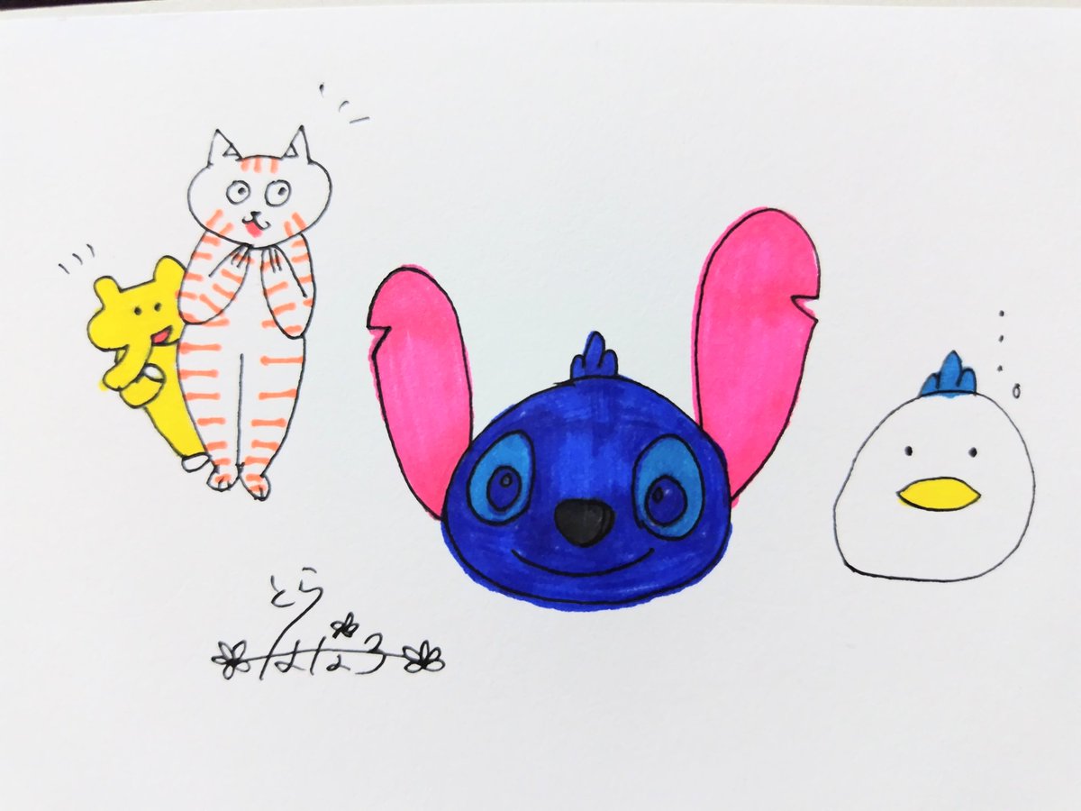 おはようございます!! #スティッチの日 ニワちゃん友達になりたいんだね!! 今日も素敵な月曜日を〜🤗 #絵描きさんと繫がりたい #みんなで楽しむTwitter展覧会 #イラスト #油性ペン #マッキー画