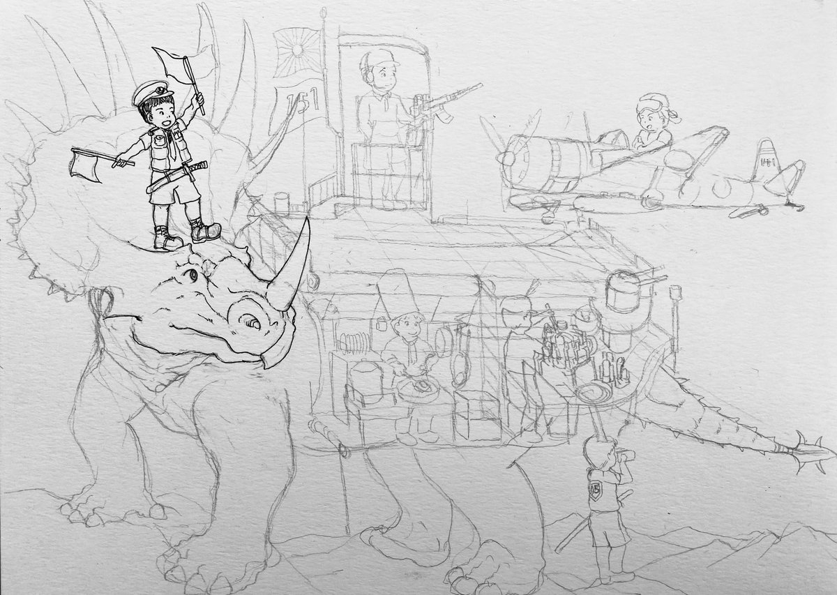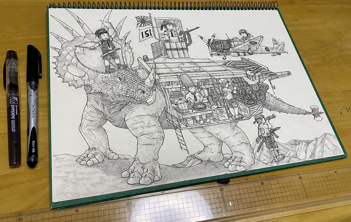 一角、完成。 “The Horns of Solitude”, Task force,Land- movable mother ship as The Captain Styracosaurs. #イラスト #お絵描き #恐竜 #スティラコサウルス #dinosaurs #Styracosaurus #mothership