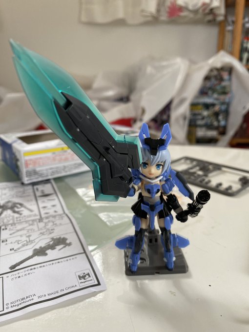 スティレット デフォルメVer. 完成しました。 スタイルの調整を行なって可愛くしたスティレットです。 ヘッドパーツはQpminiを使用。 武器はXF3に付属のガトリングガンとブレード、あとはいつものナイフです。 #フレームアームズ・ガール #スティレット