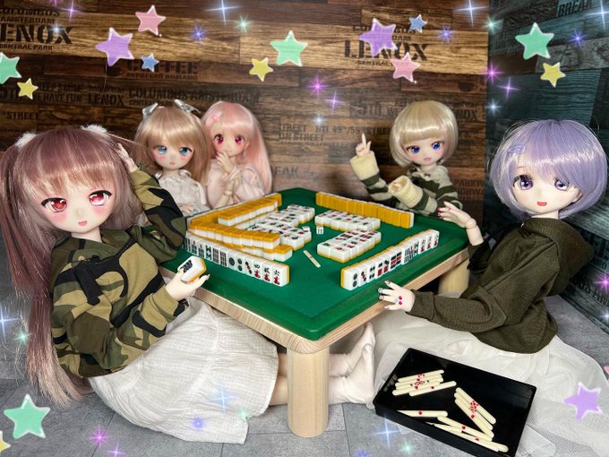 娘達は麻雀で遊んでいます🀄️😆✨ 凛音と桜音は麻雀をするのが初めて👀✨ゲームが得意な凛音は早速ルールをマスターしたようで、絶好調です🥳🎉 #もこもかっこ #THユカリnail #MDDはいいぞ #p_house #missantroop #みさんとるーぷ #ぷちりぼん #麻雀 #mahjong #ステイホーム #tablegame