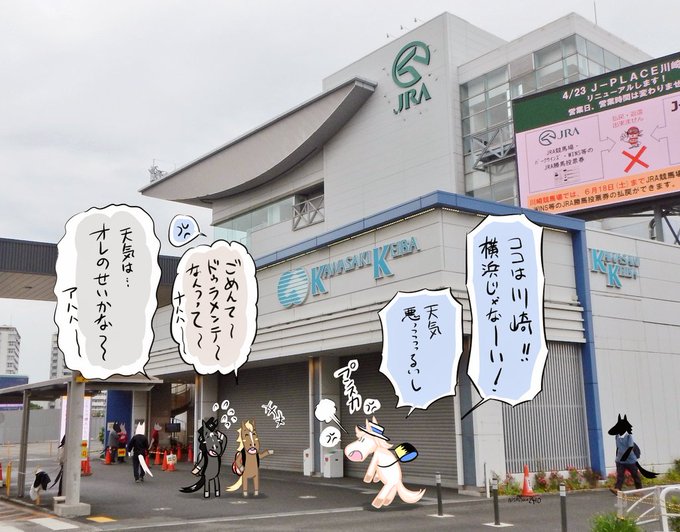 #ステラとオロの日本観光 ここは関東のゴッサムシティこと魔境kawasakiにあるカオス競馬場… ていうのは半分冗談で、 ステラオロとソダちゃん合流しました。横浜川崎は電車ですぐなので…