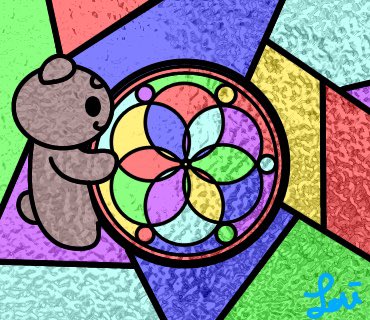 ネットで調べて試してみたよ🐻🍀ステンドグラス風のイラスト。 #わたげ山のくま田べあ吉 #イラスト #絵 #イラスト好きさんと繋がりたい #絵描きさんと繋がりたい #ステンドグラス風 #手こずった #中々良さげ #illust #illustrator #illustration
