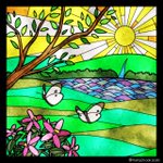 スワンdeステンドグラス (黒鳥バージョン) 先ほどの白鳥をアイビスペイントで色を反転させて遊んでみました(*´∀`) #水彩画 #アナログイラスト #黒鳥 #ステンドグラス風イラスト #イラスト #イラスト好きな人とつながりたい #絵描きさんと繋がたい