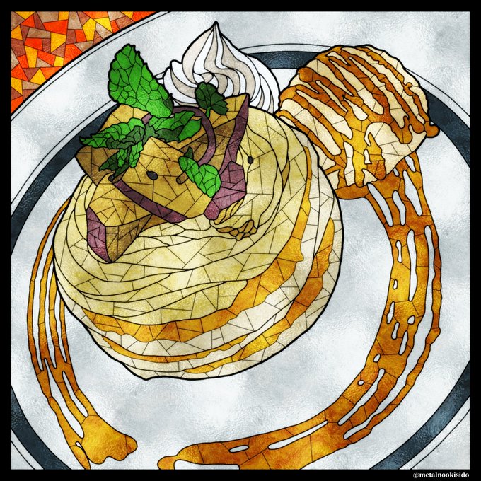 aoc【@aoc_no39 】さんの作品でステンドグラス風イラストを描かせていただきました! ほんわかした男の子と美味しそうな食べ物の組み合わせがキュートな作品ばかりで、ずっと見てられます❣ ※ご本人様に許可をいただいております。 #ステンドグラス風イラスト