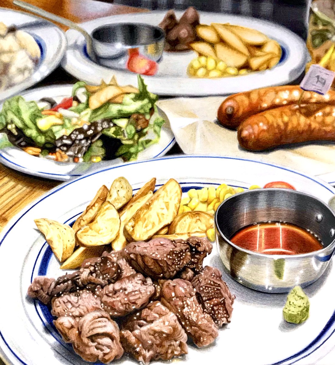 本日描いたのは 「好きですビブテック」でした。 お買い上げありがとうございました。 おやすみなさい。 #ちっちゃめ絵 #絵 #イラスト #illustration #食べもの #ステーキ #ポテト #ビフテック #フレンチフライ #conne #はらぺこめがねの直売所 harapeko-megane.stores.jp