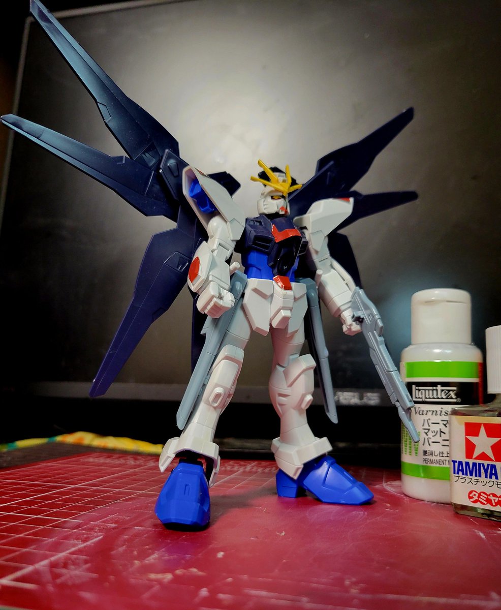 前にスペースで組んだ144/1ストライクフリーダムガンダム、やっと自立させられた🙌 手足の関節が動かないから、立ちポーズで接着しちゃうか、改造するか悩みどころ🤔 とりま明日は部分塗装しよう✒️ 武器は友達に複製してもーらおw #ストフリ #赤バンダイ #ガンプラの画像貼るとRTされると聞いて