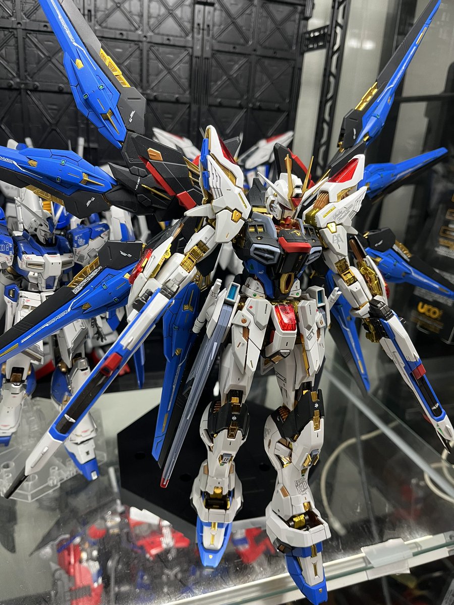やっと?MGEXストフリが完成しましたぁ〜😇 青はサノアスブルー、ライトグレーはファレホのバーントアイアンで 塗装しました。いや〜マジでカッコイイ🥰 ちょっとドラグーンを外した状態で。 #MGEX #ガンプラの画像貼るとRTされると聞いて #ガンプラ好きとつながりたい #ストフリ