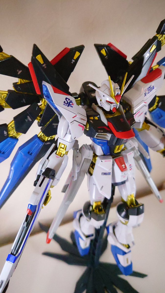 素組み・未塗装で非の打ち所がない仕上がり😍 今週末はシールとビームサーベルで撮ろう📸📸📸 てかTwitterアプデしたら縦表示できなくなるのか…… まだ縦で観れる方が多いうちにストフリお気に入り写真をあげておきます笑 #mgex #mgexストフリ #ストライクフリーダム #strikefreedom #ガンプラ