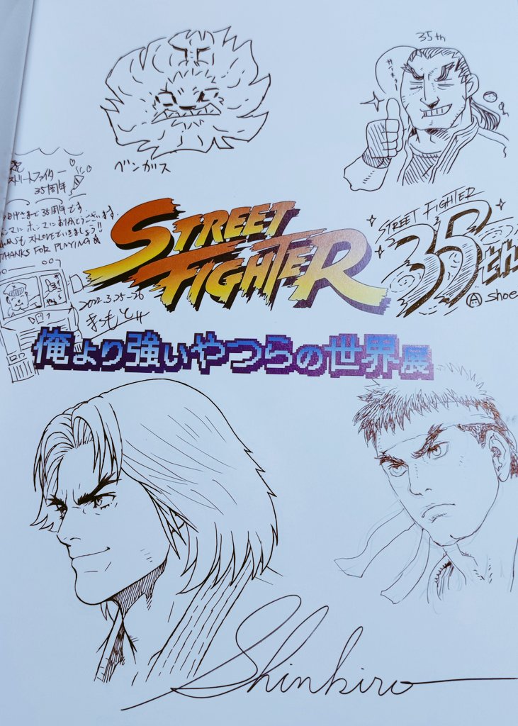 ストリートファイター展のトークショー特典で図録40冊に サイン描いたから ちょっとキャラ描くの上手くなった その感覚忘れないうちにもう一枚❣️ #ストリートファイター展 3/27迄なので行っておられない方は ぜひぜひ❗️