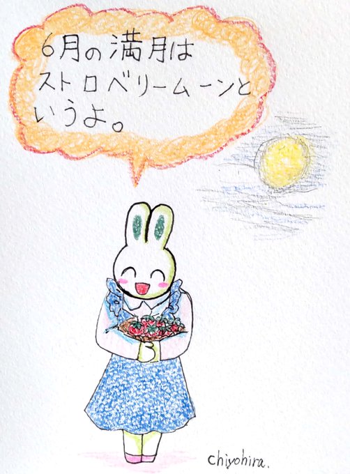 今日は満月🌕️✨ 6月の満月はストロベリームーンというそうですよ🍓 各地で梅雨入りしてるから見られる地域は限られそうですが、のんびりと月を眺めたいです。 (過去絵で失礼します) #満月 #moon #FullMoon #StrawberryMoon #ストロベリームーン #イラスト