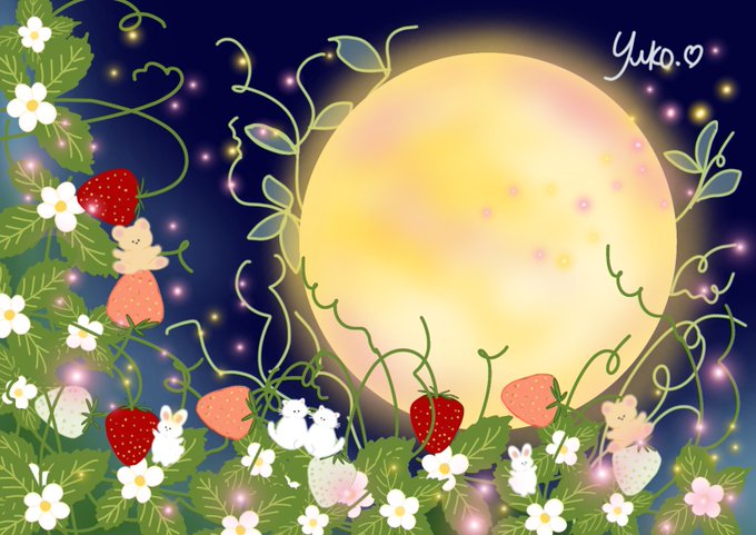 「ストロベリームーン!!!!!」 . 今夜はストロベリームーン(6月の最初の満月)🍓 恋愛運がUPするとか前向きな願い事をすると良いとかいう噂もあるとかないとか!!! 月の出は東京19:19だそうです🌕 . pixiv.net/artworks/10872… #ましまろう #ストロベリームーン