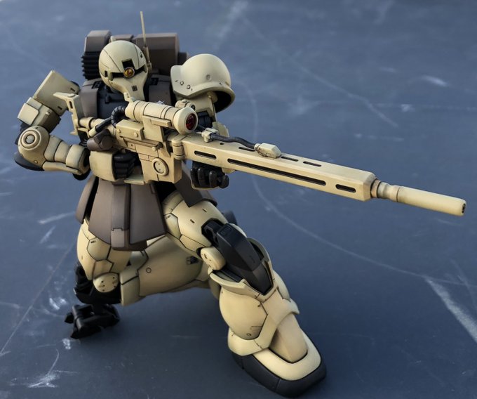 #スナイパーライフルを構えるとフォローやrtが来るらしい いちお、試作ビームスナイパーライフルで4射で打ち止めというオラ設定。 #ガンプラ #ガンプラの画像貼るとRTされると聞いて #F2ザク #ガンプラはどんな発想で作ってもいいんだ