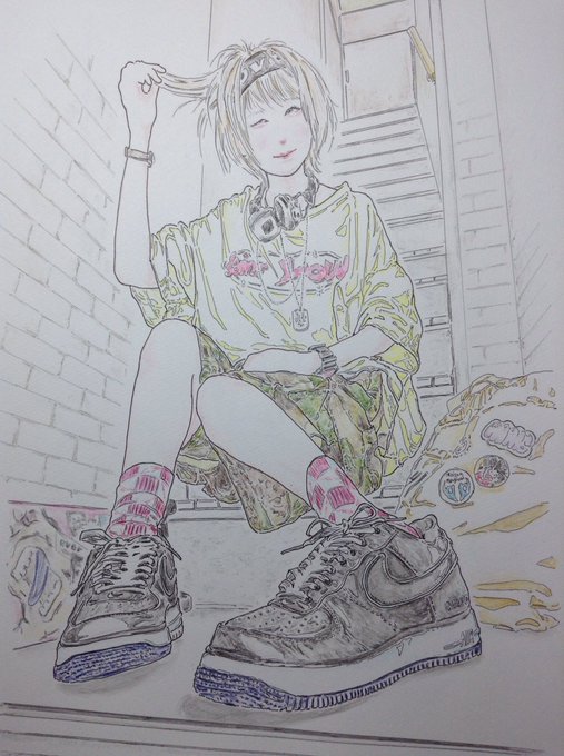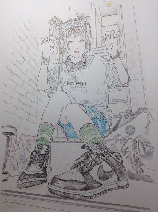 スニーカーガール[akiさん] x.achan.x #スニーカーガール #スニーカー女子 #イラスト #イラストレーション #イラスト好きな人とつながりたい #イラストグラム #illustraion #watercolor #overprint