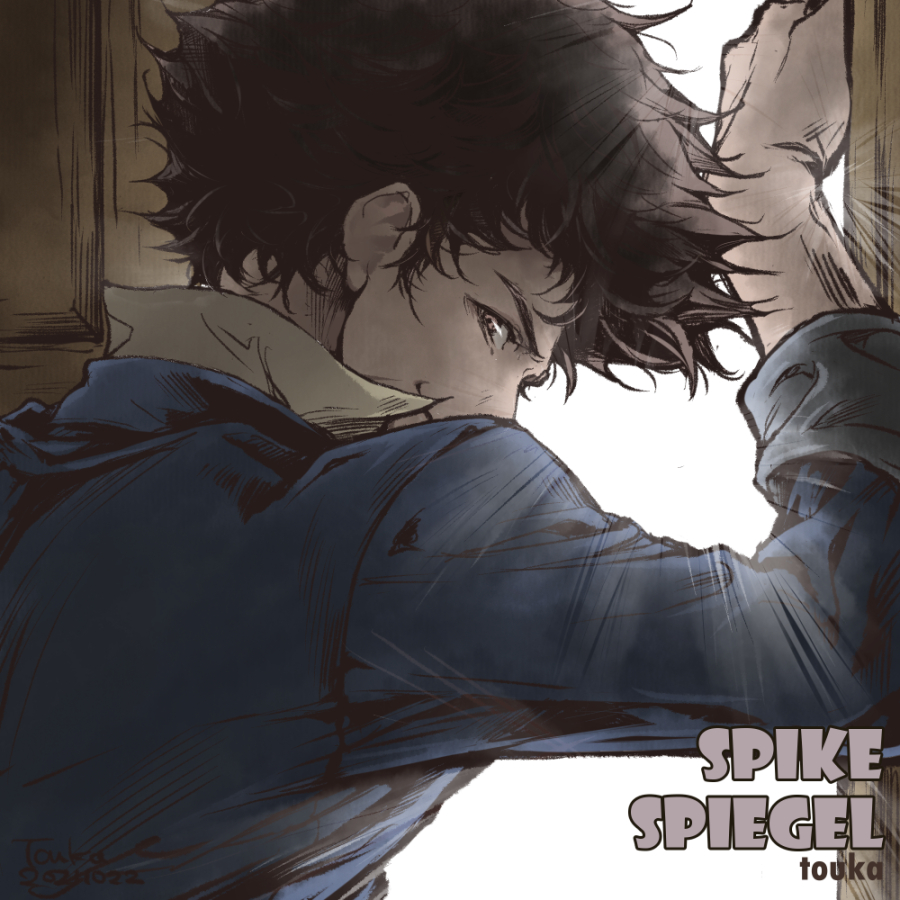インクトーバー22日のお題「開く」で、扉を開ける『カウボーイビバップ』のスパイク。 またインクトーバーっぽくならなかったけど実写化おめでとうございます! #inktober #inktober2021 #ペン画 #カウボーイビバップ #スパイクスピーゲル #procreate