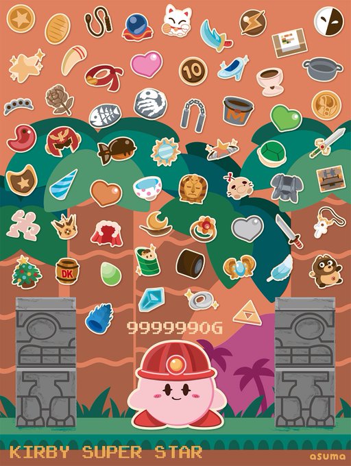 星のカービィSDXの発売日記念✨ということで、洞窟大作戦のお宝60個ぜんぶ描いてみました!💎✨個人的には「えちごやのおかし」が好きでした😆 #スパデラ26周年 #星のカービィ #カービィイラスト #絵描きさんと繋がりたい #みんなで楽しむTwitter展覧会 #春の創作クラスタフォロー祭り #イラスト