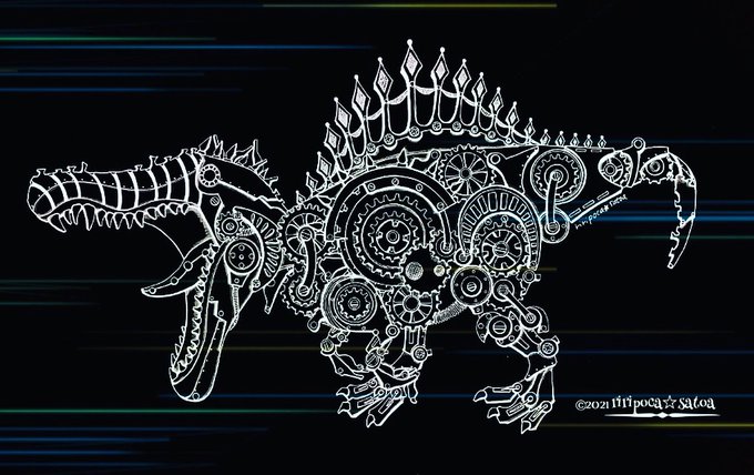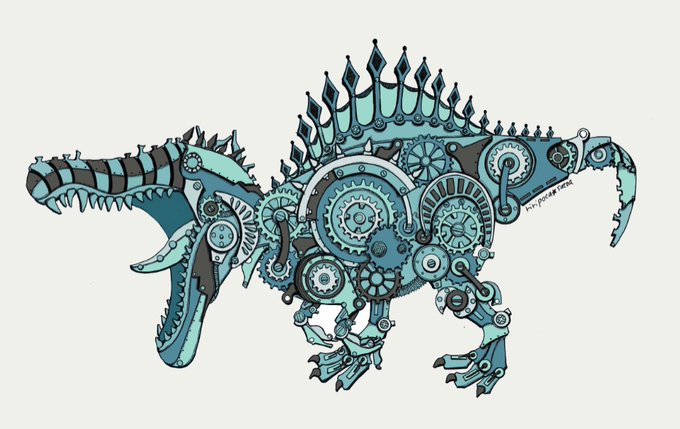 今日もお疲れ様でした✨✨ 体調不良でギブでした(^◇^;) 皆様もこの気候にやられないようにお気をつけて下さい💦 ⚙スピノサウルス⚙ #スチームパンクイラスト #歯車イラスト #ペン画 #スピノサウルス #絵描きさんと繋がりたい