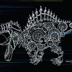 おはようございます(о´∀`о) 今日もよろしくお願いします♪ ⚙スピノサウルス⚙ #創作 #スチームパンクイラスト #ペン画 #歯車イラスト #スピノサウルス #絵描きさんと繫がりたい