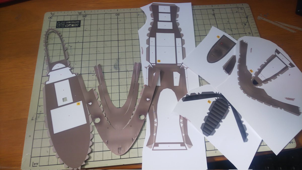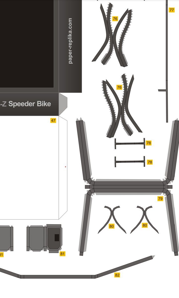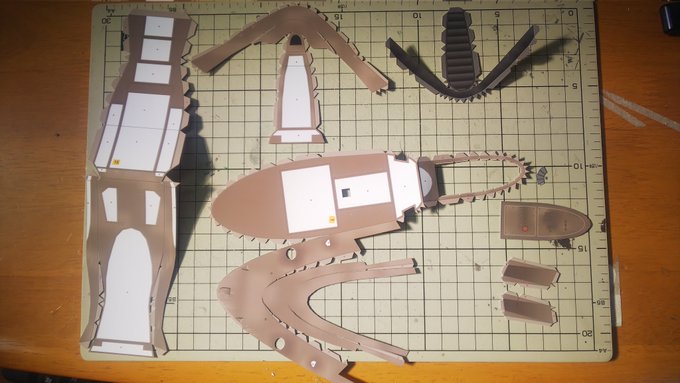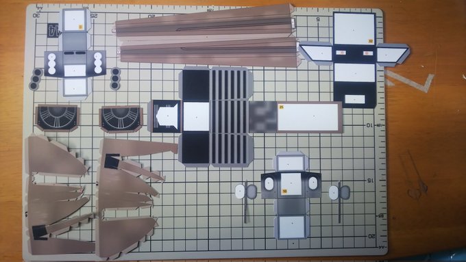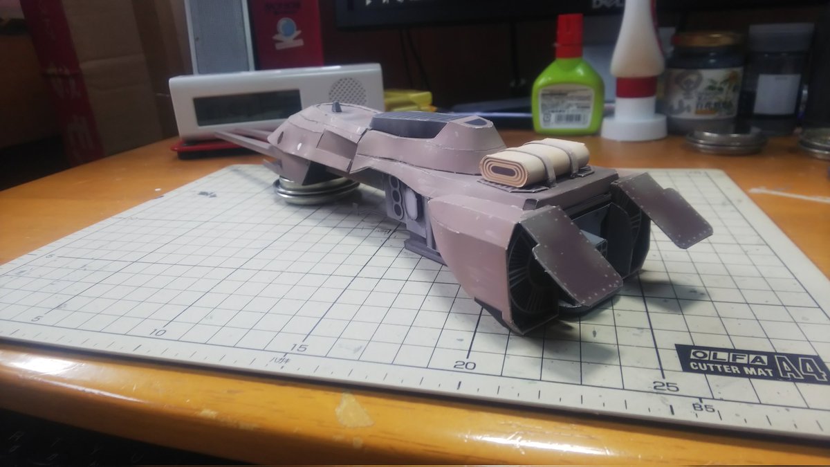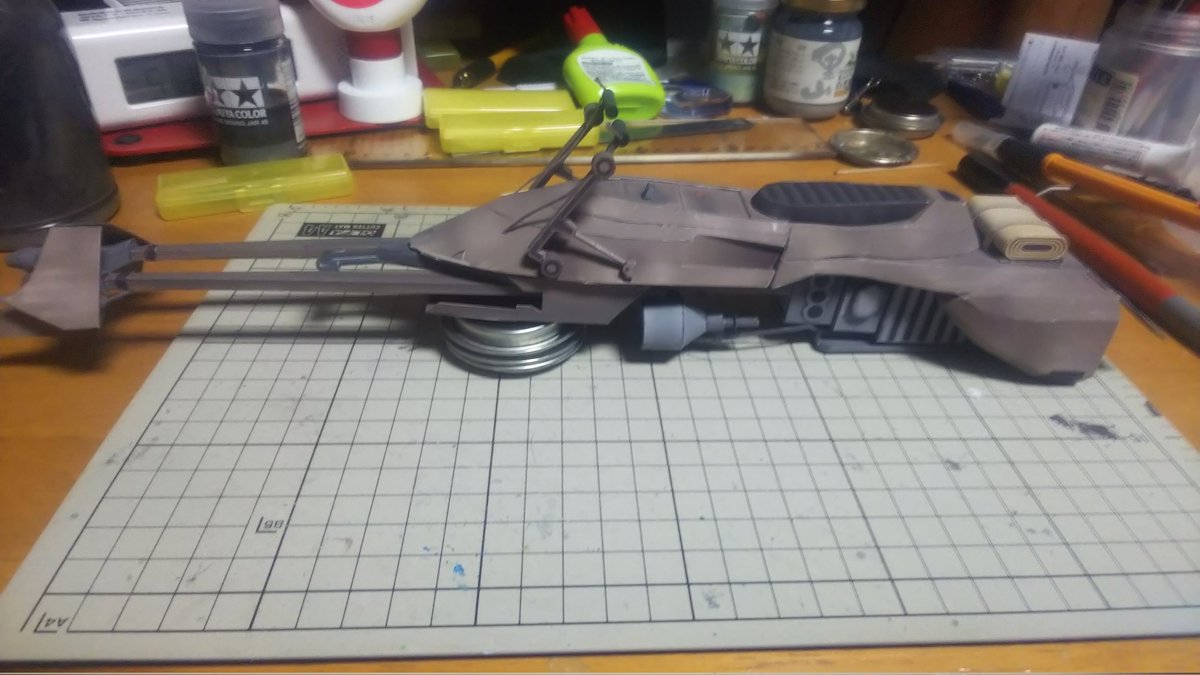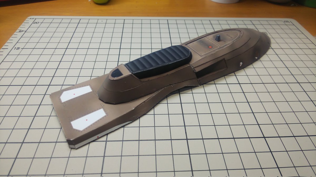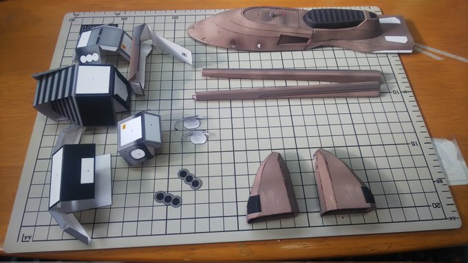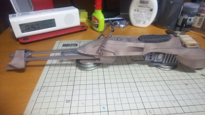 スピーダーバイク進捗 今日はSTEP-03のパーツ切り出しとタッチアップ、折り曲げなどの組み立て下準備をやってました。 今日の作業約3時間 累計16時間 #ペーパークラフト #StarWarsVisions #スピーダーバイク